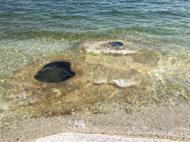 The three main features actually in the lake were: Lakeshore Geyser, Fishing Cone, and Big Cone.