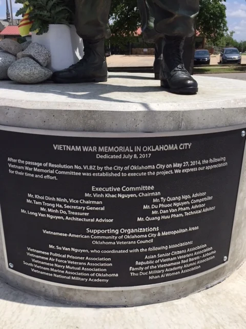 The Monument is the work of Thomas Jay Warren, and the vision of Vinh Nguyen, the Chairperson of the Oklahoma City Vietnamese-American Community. Mr. Nguyen served as a Lieutenant Colonel in the South Vietnamese Army during the war, and led a fundraising campaign to raise $250,000 for the Monument and flag plaza. In 2014, the OKC City Council passed a resolution supporting a Memorial at Military Park. The Monument was installed on July 6, 2017 and a dedication ceremony was held on July 8, 2017. The public unveiling ceremony featured a presentation of the U.S and South Vietnam Flags, a live performance of the National Anthem, and other patriotic and Vietnamese music.