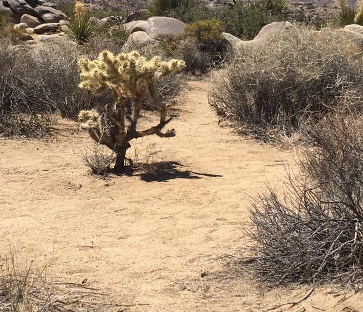 As you drive through the South end of the park, you are in the cactus-dotted Colorado Desert. The Cholla Cactus Garden, on Pinto Basin Road, begins with a short walk on a circular path through a thick stand of cholla cactus, noted for its especially prickly exterior.